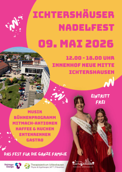 Am Samstag, dem 09.05.2026 wird von 12.00 Uhr bis 01.30 Uhr im Gelände der Alten Nadelfabrik (Neue Mitte) in Ichtershausen ordentlich gefeiert.